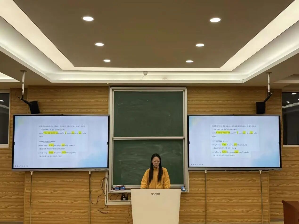 11月16日,由足球预测网-足球胜负预测 研究生会主办、学术科研部承办的研究生学术沙龙第31期在学院708室举行,2024级应用经济学研究生马逍月、宋来俊、闫雨沙围绕“实证软件操作与论文写作”进行专题分享,学术科研部工作人员王香格担任主持人,学院2024级、2025级全体应用经济学研究生参会。