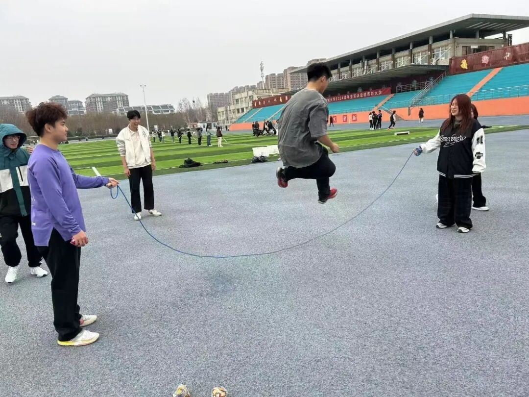 本次趣味运动会精心设置了沙包投掷、跳大绳环节。沙包投掷环节,同学们分组展开激烈角逐,每组中三位同学负责投掷沙包,其余同学则需通过灵活跑步躲避,以防被沙包砸中,比赛过程中选手们全神贯注,投掷者精准发力,沙包在空中划出一道道优美的弧线;躲避者灵活走位,巧妙躲闪,现场加油声、欢笑声交织成一片,将活动气氛推向高潮。