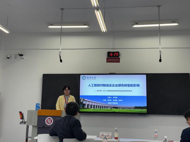 据悉,本次论坛汇集了来自复旦大学、南京大学、武汉大学、中国社会科学院等国内知名高校科研院所的上百名专家学者,围绕“新质生产力与外贸高质量发展”“产业链供应链韧性与安全治理”“数字贸易与全球经济体系变革”“绿色低碳驱动下的贸易新动能”等前沿议题和高质量论文展开深入研讨,经严格筛选,最终确定48篇优秀论文入选会议议程并进行现场汇报交流。《人工智能对制造业企业绿色转型的影响——基于新一代人工智能创新发展试验区的准自然实验》的入选与汇报,充分体现我校师生在相关领域持续深耕创新的同时,也反映了学校研究生扎实的科研素养与良好的学术风貌,切实为提升学校科学研究和学科建设水平注入了崭新动力。、