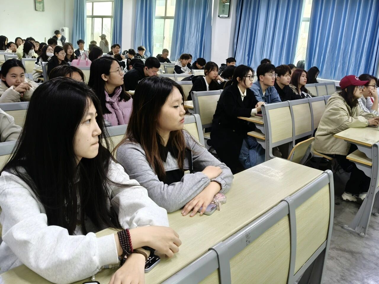 分享结束后,同学们就自身在学习、科研、实践等方面遇到的问题积极提问,现场交流氛围热烈。2024级8班的李宇同学感慨道,“本次活动让我们从优秀学姐的经验分享中汲取了知识和力量,在今后的学习和生活中,我们将以学姐们为榜样,努力提升自身综合素养,在各自的领域积极进取”。