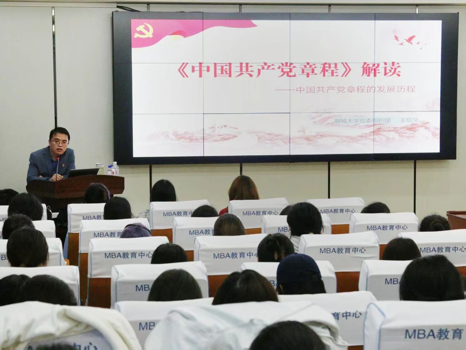 4月22日,学院邀请聊城大学党委组织部组织员王绍文以《中国共产党章程》解读——中国共产党章程的发展历程为题,凭借深厚的专业知识和丰富的历史案例,深入浅出地向入党积极分子讲述了党章从萌芽到成熟、从发展到完善的历史脉络。通过回顾党章的每一次修订,让同学们深刻认识到党章不仅是党的根本大法,更是党的理论和实践发展的忠实记录,激励着大家从党章中汲取智慧和力量,坚守党的初心和使命。