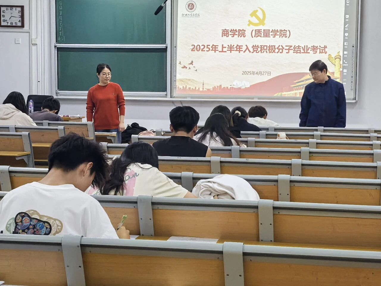 4月27日,学院举行入党积极分子结业考试,2025年上半年入党积极分子参加。考试内容涵盖党的基础理论与知识,重点考察习近平新时代中国特色社会主义思想、《中国共产党章程》以及党史等方面内容,通过闭卷形式检验学习成效。考试期间,学院党委书记公维才、组织员由玲对本次考试进行全程监督指导,确保考试过程公平、公正、公开。入党积极分子们精神饱满、态度严谨,严格遵守考场纪律,认真思考每一道题目,专注作答,考场秩序井然。他们用实际行动展现了对党的忠诚和向往,以及积极向党组织靠拢的决心。本次入党积极分子专题党课系列培训会内容丰富、形式多样,具有很强的针对性和实效性。通过一系列的学习活动,让入党积极分子们对党的性质、宗旨、纲领有了更深入的了解,进一步端正了入党动机,提高了政治素养和思想觉悟。学院将以此次培训为契机,持续加强党员教育体系建设,为党的事业培养更多有理想、敢担当、能吃苦、肯奋斗的新时代青年先锋,为实现中华民族伟大复兴凝聚青春力量。