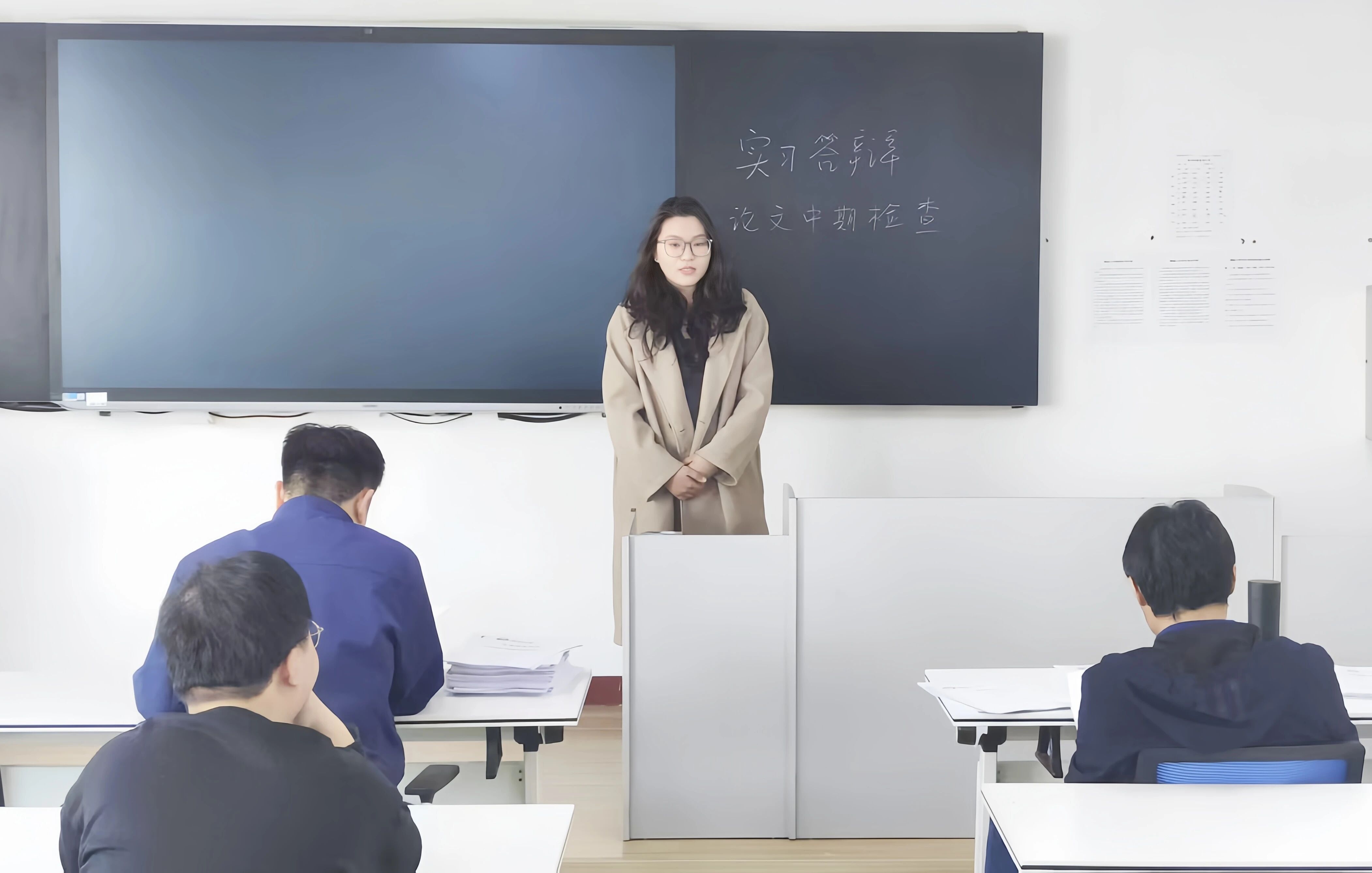 答辩以“实习汇报+论文进展”双线模式展开,共分为毕业生汇报、教师提问、教师点评三个环节。同学们依次就个人的毕业实习经历和论文进展情况进行详细汇报,答辩导师对学生的实习和论文给予了充分肯定,同时也指出问题和不足。针对实习,导师们建议要进一步加深对实习岗位的理解,提升专业技能,将实习经验转化为宝贵的职业财富;针对论文,导师们强调了研究的创新性和实用性,提醒同学们要注重数据的分析和论证,确保论文严谨科学;导师们还就论文的格式、引用等规范性问题提出具体建议。