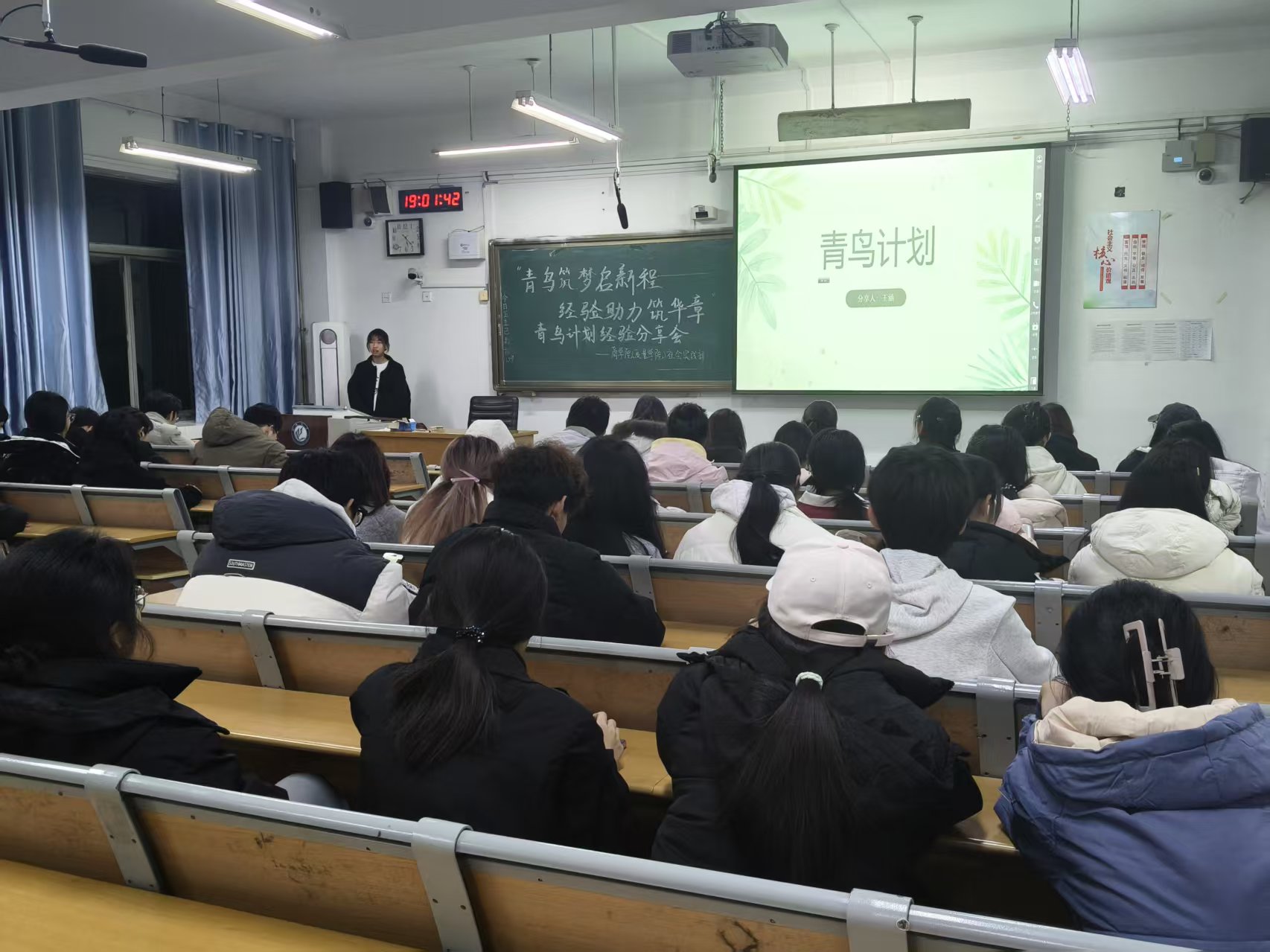 王涵围绕“青鸟计划”报名方式以及成长蜕变,分享实习经历,讲述从关注招募通知、成功获青州文旅局录用到投身实践平台的心路历程以及经验分享,她表示,此次实践有效实现了理论与应用的结合,提升了工作梳理与沟通能力,并呼吁与会学子积极投身“青鸟计划”,在实践中成长不断丰富自我。