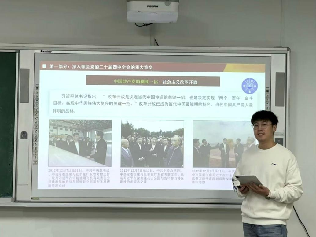 会上,刘建昊从党的二十届四中全会系列关键词及背后逻辑出发,围绕深入领会党的二十届四中全会意义,全面理解“十五五”规划建议原则目标及系统把握“十五五”规划建议战略要点和挺膺担当新时代青年大学生使命与责任四个方面,深刻阐释了“十五五”规划建议作为推进中国式现代化行动纲领的重大意义,并呼吁与会青年学子珍惜当下、立足优势兴趣、释放青春力量,争做新时代全面深化改革的先锋闯将。