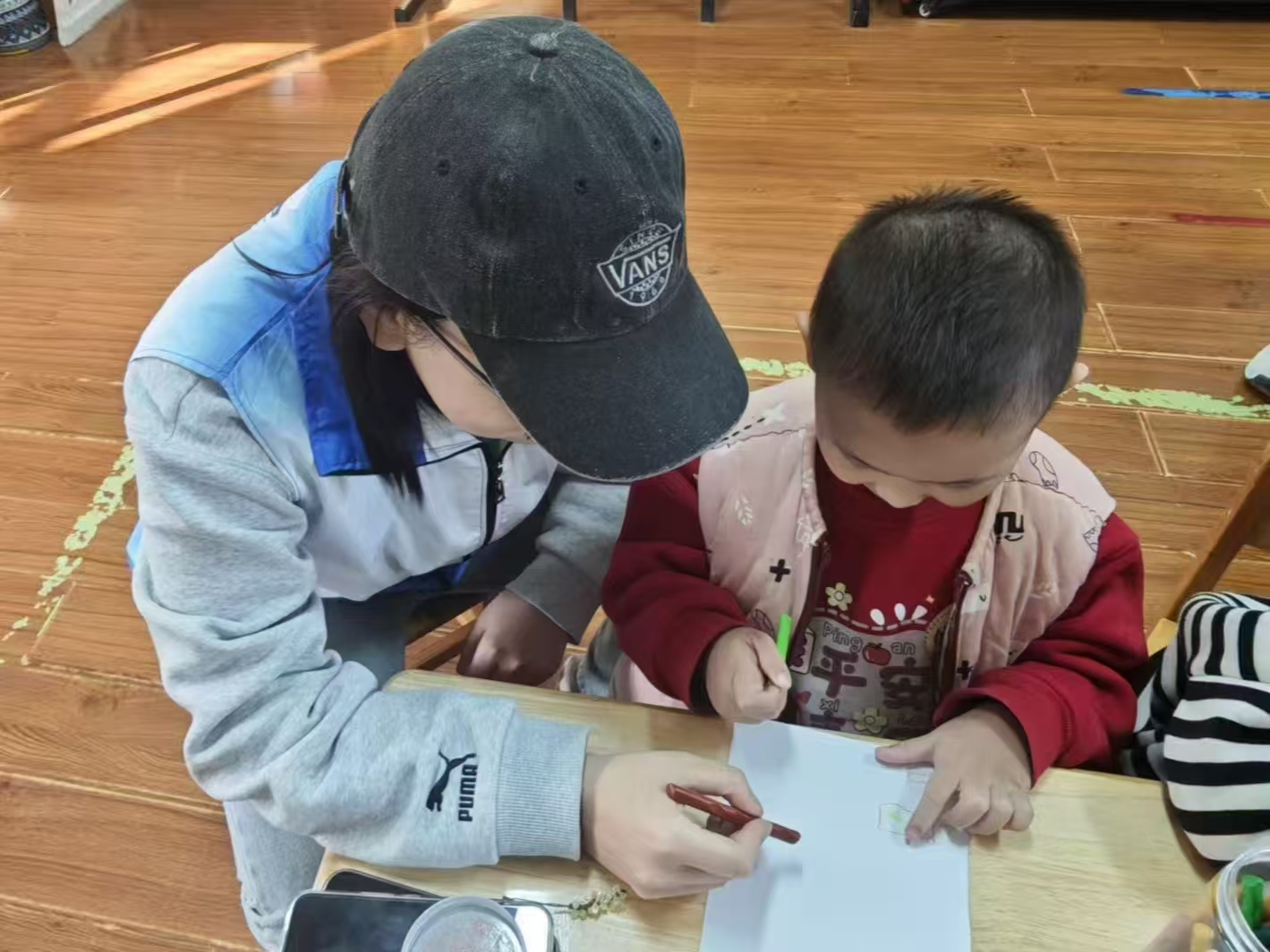活动中,志愿者以PPT宣讲为主要形式,辅以历史影像资料与典型案例,向小朋友们系统阐释了国家公祭日的历史背景、核心内涵及现实意义,并积极引导小朋友们结合和平鸽、国旗、向日葵等参考图样,围绕“画出你心中的美好祖国”主题进行绘画创作,在启发小朋友们想象力的同时,切实引导幼年儿童表达对祖国的热烈情感与美好祝愿。活动尾声,志愿者积极组织爱国知识问答环节,并对回答正确的小朋友给予奖品鼓励,进一步巩固学习效果,助力爱国种子在孩子们心中生根发芽。