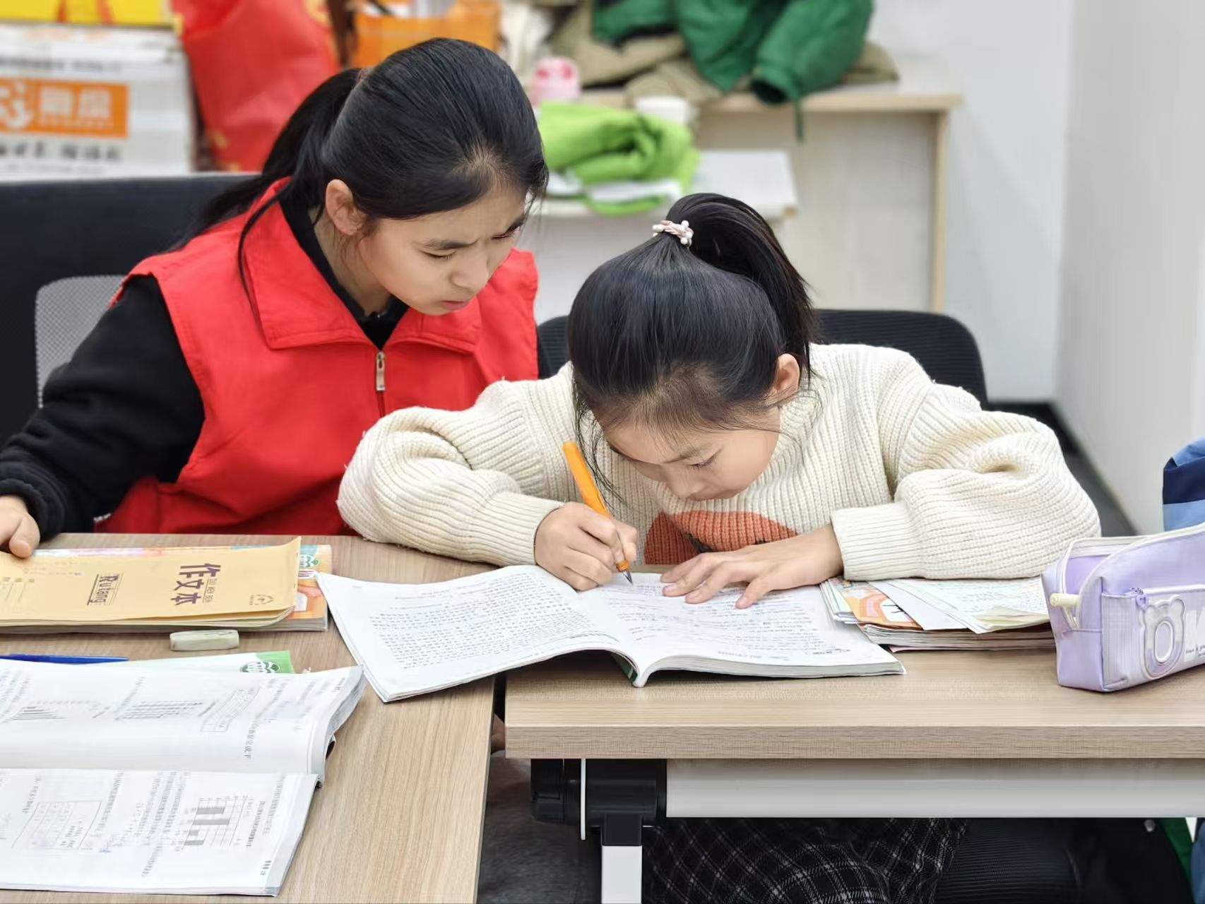 志愿者以精准课业辅导切入,在耐心解答小朋友作业难题,引导其梳理学习思路,掌握高效解题方法,培养良好的学习习惯的同时,迅速拉近了与小朋友们的关系。在此基础上,志愿者利用辅导间隙,围绕“元旦迎新+聊城文化”开展趣味互动活动,通过生动的语言和趣味图片讲解元旦由来与传统习俗的同时,以聊城运河文化、铁塔文化和光岳楼历史为切入点,讲述了家乡特色故事与文化底蕴,进一步加深了孩子们对家乡的认知与热爱。在元旦贺卡制作环节,志愿者分发了彩纸、彩笔等手工材料,并巡回指导剪裁、配色与装饰技巧,确保孩子们的创意得以充分释放,一个个独一无二的作品相继诞生,孩子们踊跃分享创作想法,现场欢声笑语不断。