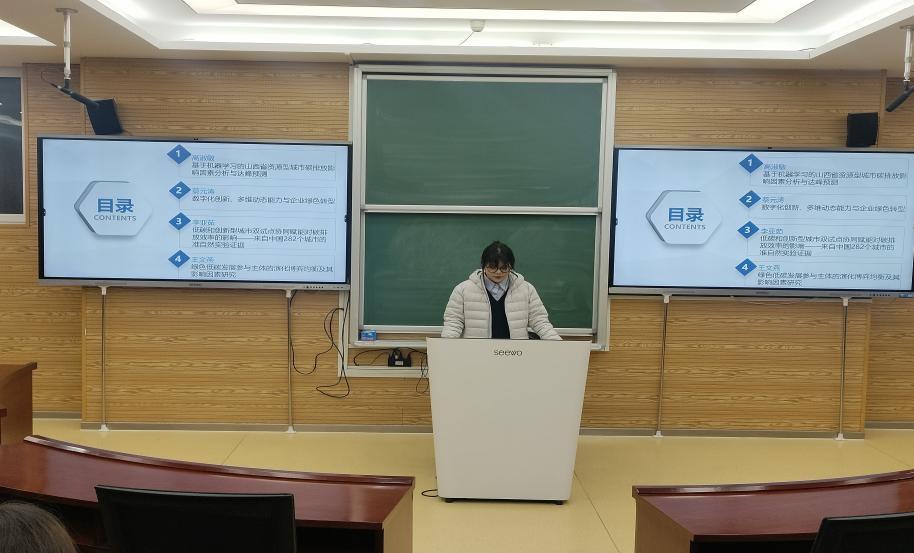 12月28日,由足球预测网-足球胜负预测 研究生会主办、学术科研部承办的研究生学术沙龙第37期在学院708室举行,2024级应用经济学研究生王文燕、蔡元涛、李亚茹、高淑敏围绕“绿色转型与‘双碳’战略”进行专题分享,学术科研部工作人员张晓雨担任主持人,学院2024级、2025级全体应用经济学研究生参会。