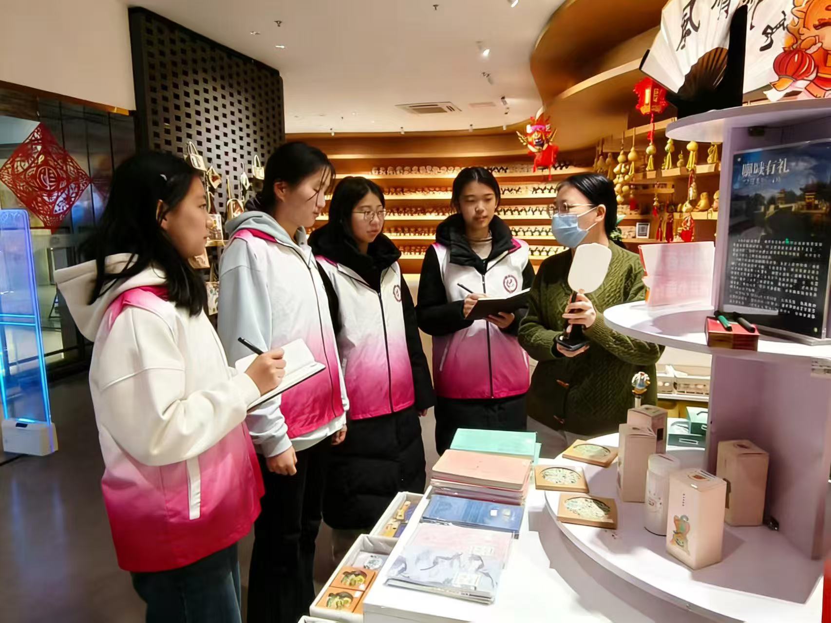 博物馆内,志愿者在讲解员的带领下,系统参观运河文化陈列、聊城古代文明陈列等核心展厅,全面了解聊城段运河的开凿历史、漕运管理体系、商贸往来情况以及沿岸民俗风貌,以实物与文献结合的形式,全面认知运河对聊城经济发展与文化繁荣的历史意义。同时,志愿者聚焦博物馆数字化展陈区域,体验沉浸式投影等现代展陈技术,围绕数字手段在漕运场景还原、非遗技艺传播中的实际应用展开讨论。在此基础上,志愿者还面向现场游客开展了问卷调查与随机访谈,收集不同年龄段、不同职业背景群体对运河文化的认知程度,以及对数字化展陈的体验评价和文化传播形式的意见建议。