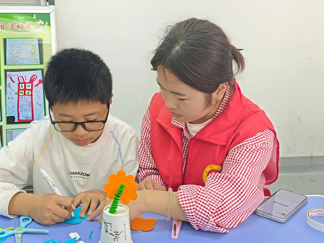志愿者以学业辅导为切入点,全面了解流动儿童在学习中遇到的困惑与难题,针对不同学科、不同知识点,为孩子们提供精准化的课业指导与学习帮扶。课业辅导间隙,志愿者积极组织小朋友们开展趣味纸杯花手工创作活动,提前分发手工材料,细致讲解制作流程与安全注意事项,鼓励大家大胆发挥创意,自主设计纸杯花等专属造型。创作过程里,小朋友们积极思考、自主构思,在志愿者的耐心协助下,认真完成裁剪、粘贴、装饰等各项步骤,志愿者全程贴心陪伴,及时给予肯定与正向鼓励,让小朋友们在动手实践中有效提升审美能力与创造思维。