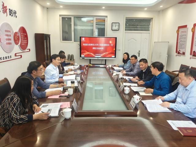 4月17日下午,山东财经大学党委常委、副校长王敬政带领山东财经大学财政税务学院党委书记石伟、院长李森等调研组一行5人莅临我院,围绕党建与教学科研深度融合、人工智能与人才培养等主题开展专题调研座谈。聊城大学党委常委、副校长杨宏力出席座谈会,我院党委书记公维才、院长梁树广,副院长王金河、匡萍等参加座谈。
